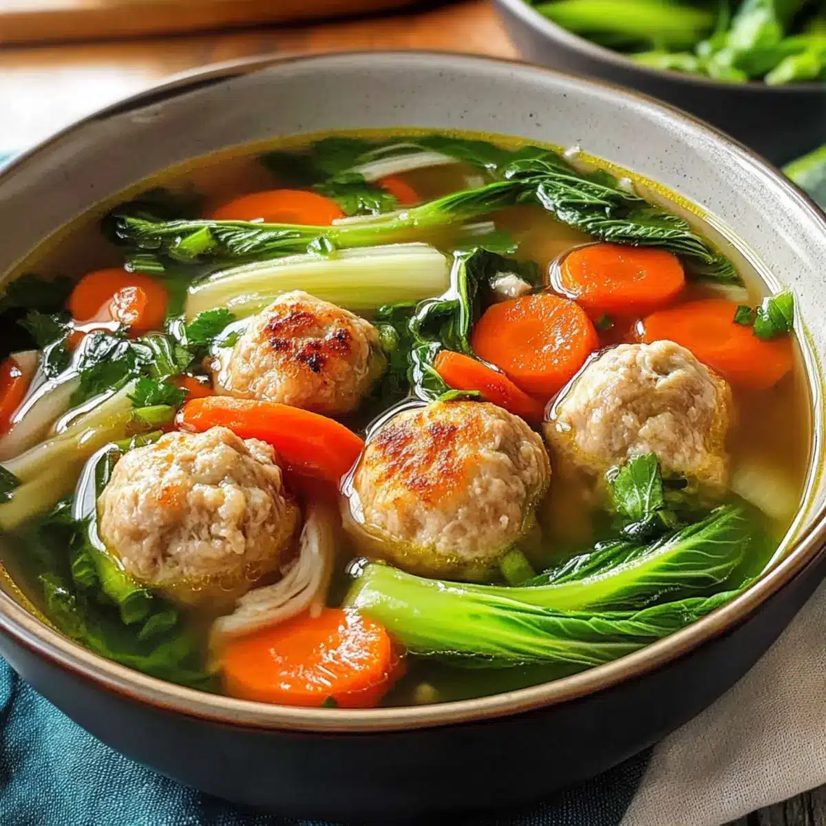 Vietnamesische Hühnerfleischbällchensuppe mit Bok Choy