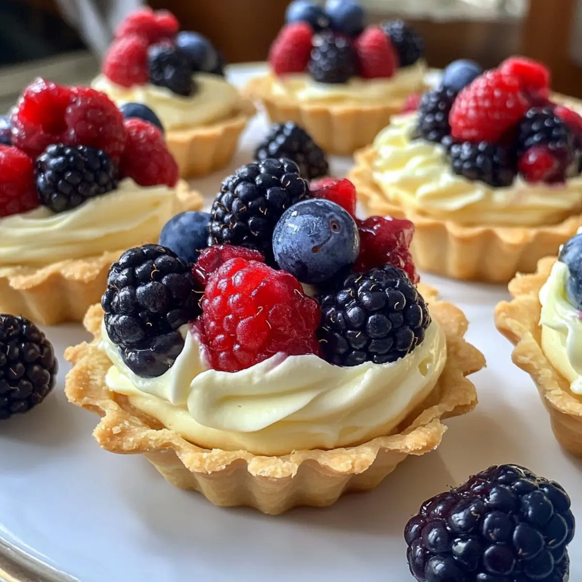 - Garnieren: Tartlets mit frischen Beeren dekorieren.