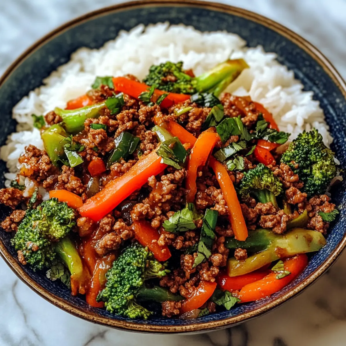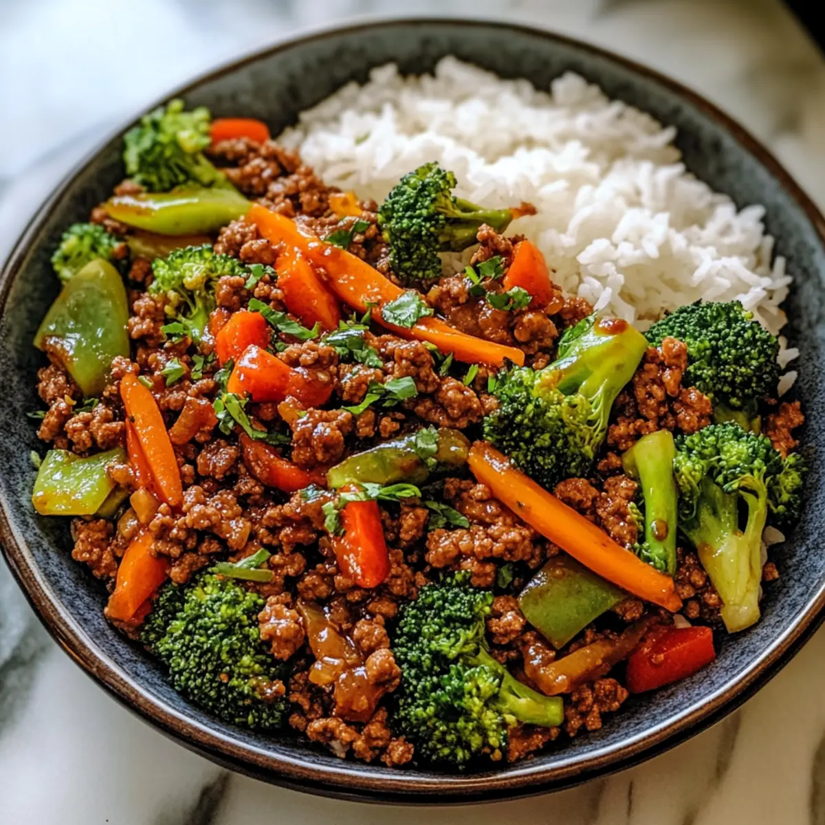Perfekte Textur: Das zarte Rinderhackfleisch und das knackige Gemüse harmonieren wunderbar mit dem fluffigen Reis und bieten ein tolles Mundgefühl.