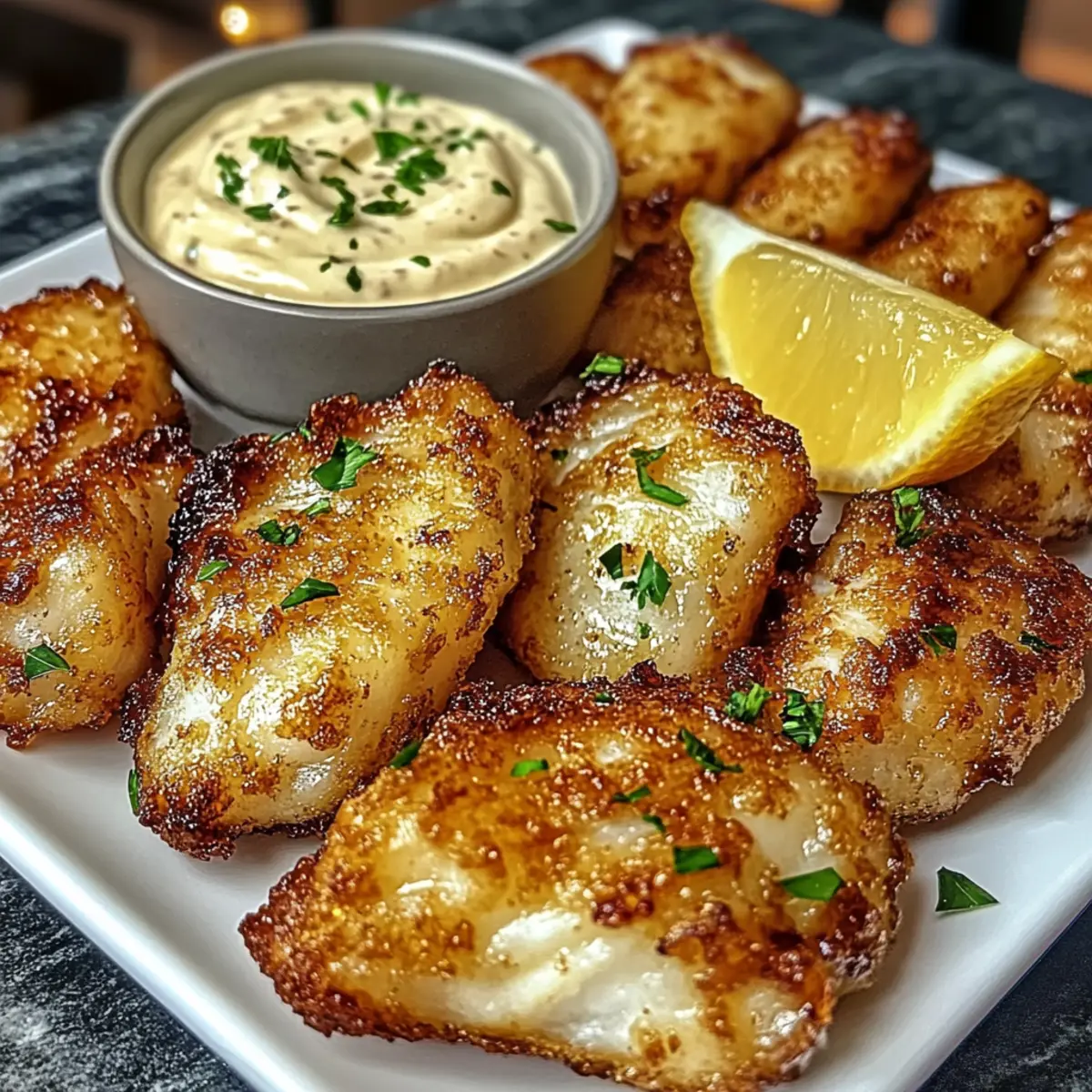 Mach dich bereit, diese goldenen Zitronenbutterfischbissen zu genießen – sie sind perfekt zum Teilen und absolut unwiderstehlich!